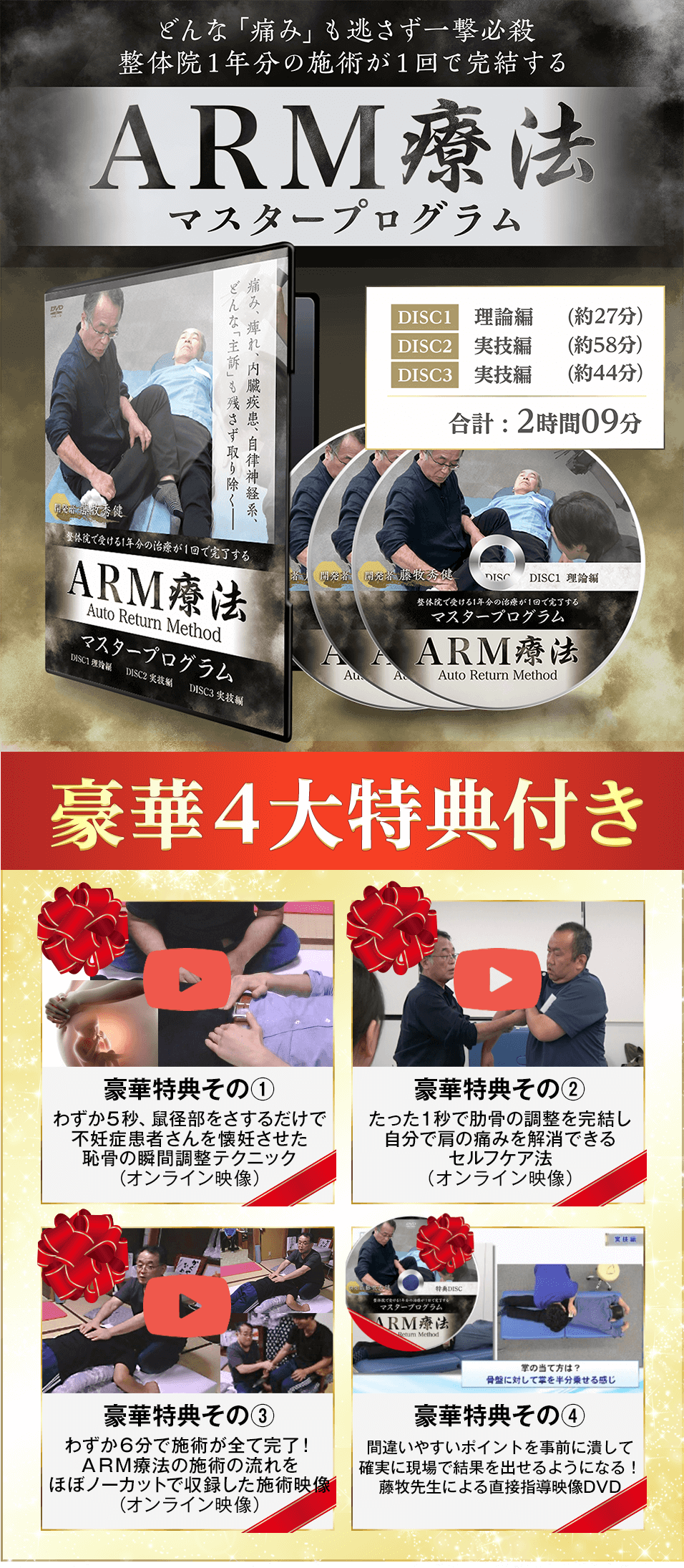 | 整体院1年分の施術が1回で完了する 藤牧秀健先生の「ARM療法」マスタープログラム |
