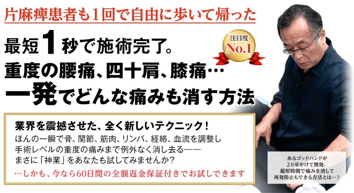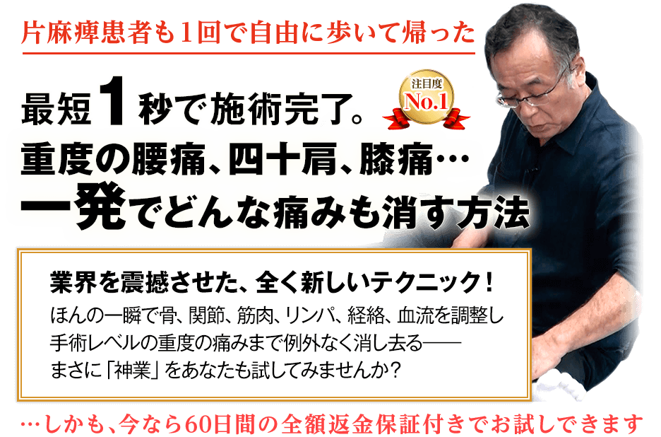 しかも、施術時間は最短1秒。ホントにこれだけで痛みが消えます。