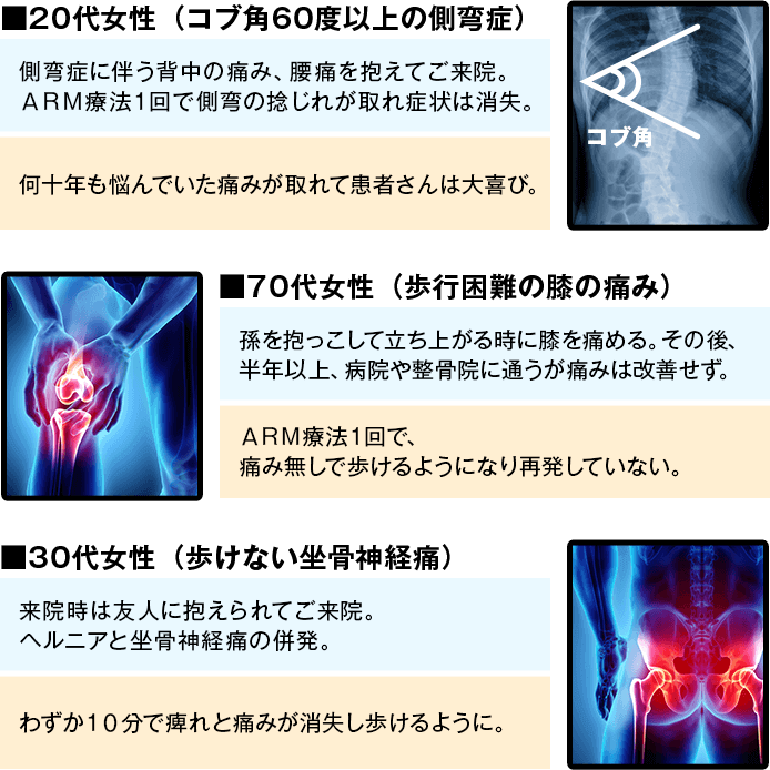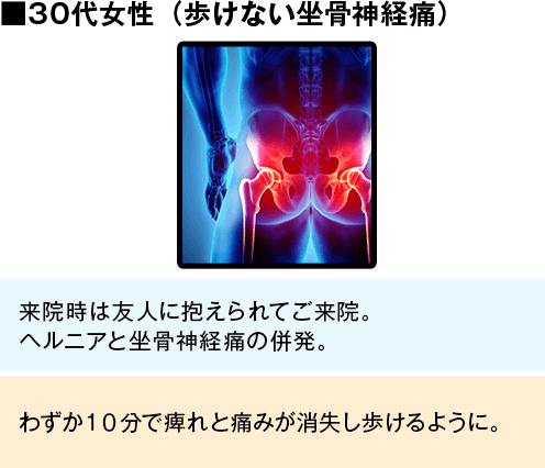 - 医者に「我慢するしかない」と言われた痛みやシビレが1回で解消。