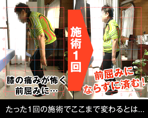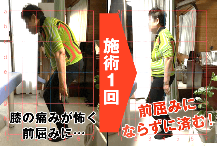 私自身、7・8年前にこけてそれからずっと膝に痛みがあり、ここ1年くらい正座が出来ない程、本当に痛かったのですが、自分自身で受けてビックリ!痛みがまっさらに消えてしまったんです。